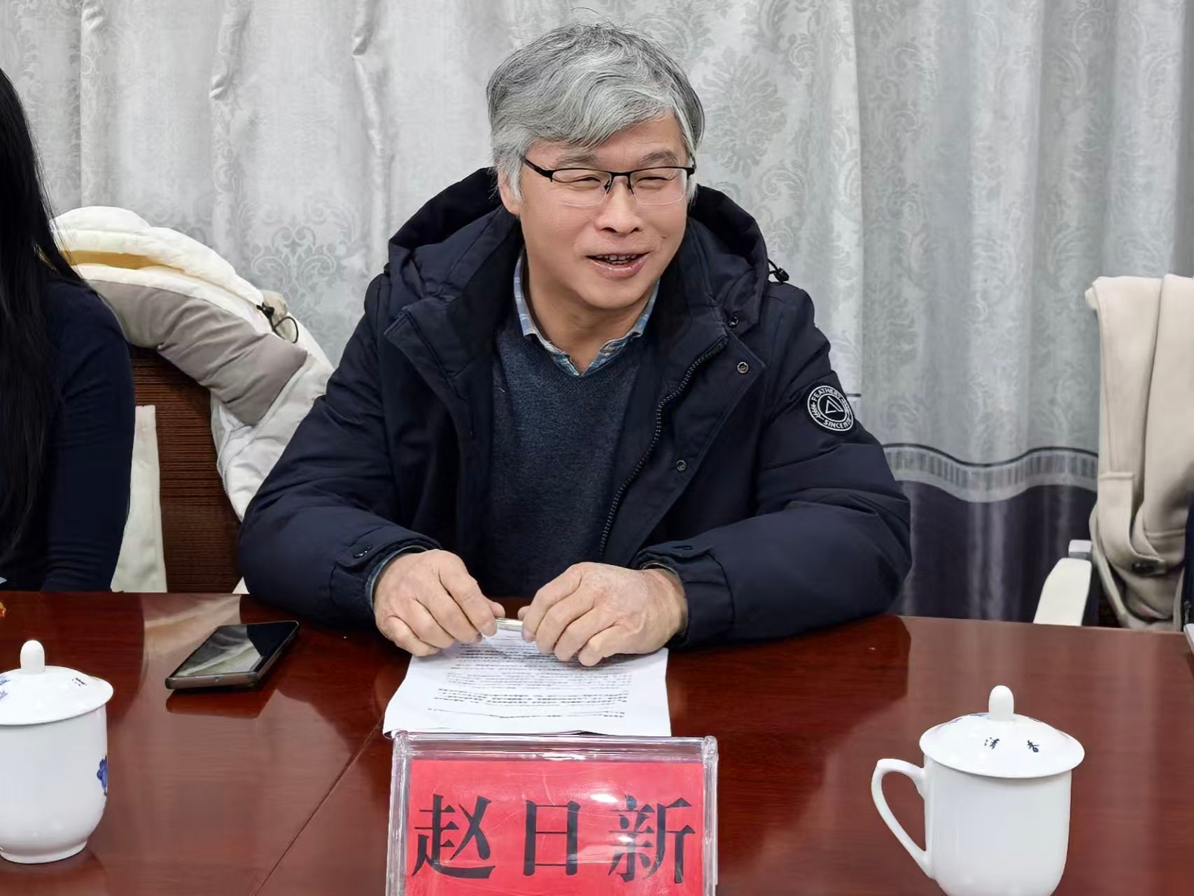 在座谈会交流环节,赵日新教授与本地文化学者围绕方言记录与民俗传承展开讨论;县教师发展中心及企业代表分别从教育实践、产业发展角度探讨了语言资源调查保护的协同机制;学院临时党支部的学生党员也结合自身体会,分享了在语言资源调查保护方面的思考与实践。