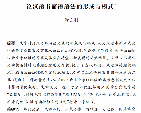 冯胜利,现任北京语言大学语言科学院教授,北京语言大学章黄学术理论研究所所长、天津大学语言科学中心首席教授、香港中文大学中国语言及文学系荣休教授。他于1977年考入北京师范大学历史系,后在北京师范大学中文系硕士班,师从陆宗达先生主修《说文》。1982年毕业留校,教大学语文和古代汉语。1986 年获美国宾西法尼亚大学 Annenberg Fellowship 奖学金,从拉波夫 (William Labov)、柯劳克 (Tony Kroch) 和里博曼 (Mark Liberman) 学社会语言学、历史句法学以及韵律学,1995年获语言学博士学位。1994年至2003年在堪萨斯大学东亚语言文化系任助理教授、副教授。2003年至2010年在哈佛大学东亚语言文明系任汉语应用学科教授及中文部主任、哈佛北京书院主任。2010年至2019年在香港中文大学中国语言及文学系任教授。曾任国际中国语言学会理事,《中国语言学论丛》副主编,《语言暨语言学》副编辑,美国国家自然基金会项目申请评审人。其研究兴趣包括乾嘉“理必”及章黄学术思想研究、韵律语法学、语体语法学、汉语历时句法学及中国韵律文学史。出版中文学术专著10部(其中英文学术专著2部,4部中文专著被译为英文、韩文),合著学术专著6部,主编学术著作10部,发表中英文学术论文200余篇。现任《韵律语法研究》联席主编和《中国语言学报》(JCL,SSCI索引)联席主编。