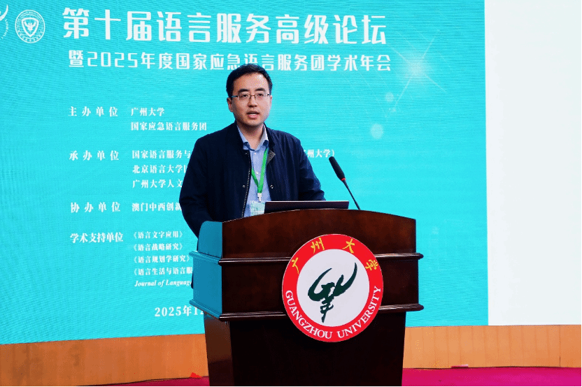 2025年12月6日至7日,第十届语言服务高级论坛暨2025年度国家应急语言服务团学术年会在广州大学隆重举行。本次会议由广州大学与国家应急语言服务团共同主办,国家语言服务与粤港澳大湾区语言研究中心(广州大学)、北京语言大学国家应急语言服务团秘书处、广州大学人文学院联合承办,澳门中西创新学院协办,《语言文字应用》《广州大学学报(社会科学版)》《语言战略研究》《中国语言战略》《语言规划学研究》《语言治理学刊》《语言生活与语言服务学刊》《天津师范大学学报(社会科学版)》《Journal of Language Service Studies》等期刊提供学术支持。来自全国(含港澳地区)50余所高校及语言科技企业的120余位语言服务领域的专家学者与行业代表齐聚一堂,聚焦“数字中文建设与语言服务”“平安中国建设与应急语言服务”两大核心议题展开深度交流。教育部语信司、教育部语用所、广东省委网信办、广东省教育厅、广州市教育局和广州大学相关领导在开幕式上致辞。