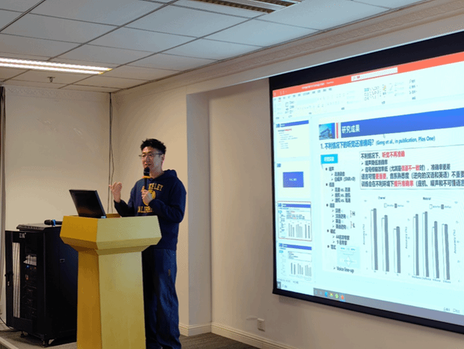 在具体研究分享环节,耿浦洋博士重点介绍了两项具有代表性的研究成果。其一聚焦毒品成瘾对言语模式的影响,通过对成瘾人群言语产出障碍的声学特征、生理机制、感知缺陷及戒毒后康复表现的系统分析,明确了言语障碍的生理—物理靶点,为司法声纹鉴定的科学性提升以及临床言语康复提供了重要理论依据。其二围绕话者身份听觉辨识的神经机制展开,通过揭示言语听觉加工的底层规律,不仅为司法声纹鉴定中的听觉检验环节确立了科学基础,也为选择性语音失认症患者的言语康复探索出以脑机接口为代表的创新研究路径。