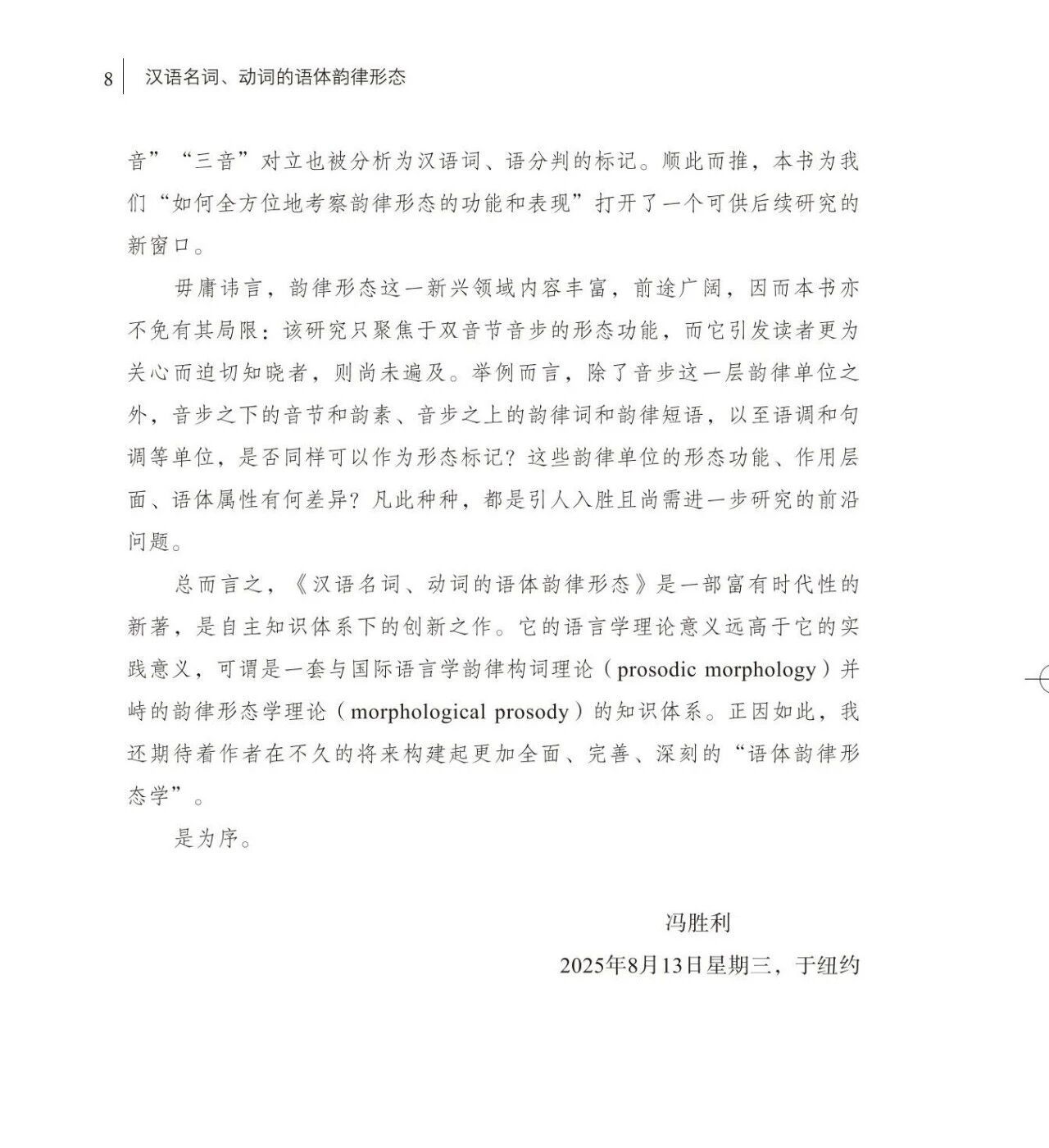 本书依据冯胜利的韵律形态理论和语体语法理论,基于时贤的相关成果,从名词和动词两大范畴入手,研究双分支音步(抑扬格和扬抑格两类)这一韵律单位在汉语正式和非正式两种语体范畴下,如何标记名词的可数性、抽象性、集合性,动词的名物性,动名词的抽象性,发掘并系统论证韵律作为汉语形态标记的事实和规律,最后探讨语体韵律形态的理论问题,对汉语韵律形态的作用原理以及语体、韵律、形态三者之间的学理关系进行理论推导,并提出语体韵律形态有待探索的研究课题。