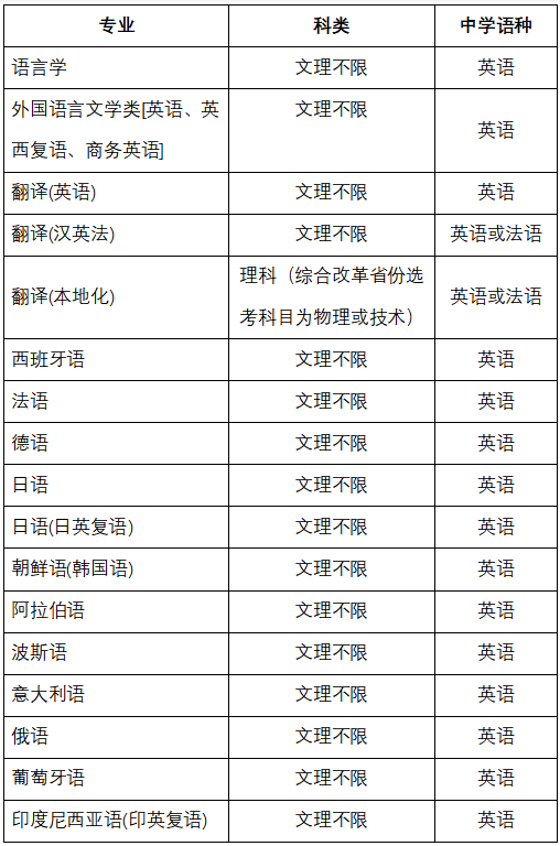 高中阶段均在教育部批准的具有推荐保送生资格的外国语中学就读、具有2022年保送生资格、德智体美劳全面发展的应届高中毕业生。