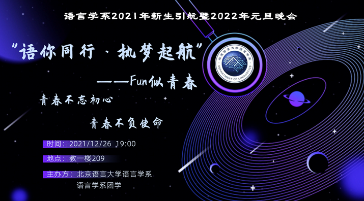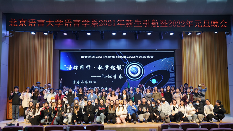 12月26日晚19:00,语言学系 “语你同行·执梦起航——FUN似青春”2021年新生引航暨2022年元旦晚会在教一楼209成功举办,语言学系全体教师及学生共同观看了本次晚会。