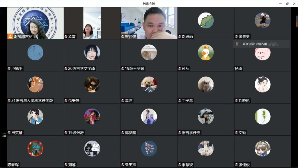 语言学系主任司富珍老师首先向全体师生介绍当前疫情防控形势,强调各位师生要严格遵守疫情防控要求,切实做到不聚集不聚餐,注意安全,积极配合学校疫情防控应急预案。面对疫情防控形势下的各种信息,要保持清醒的认识和坚定的信心,适量储备居家物资。