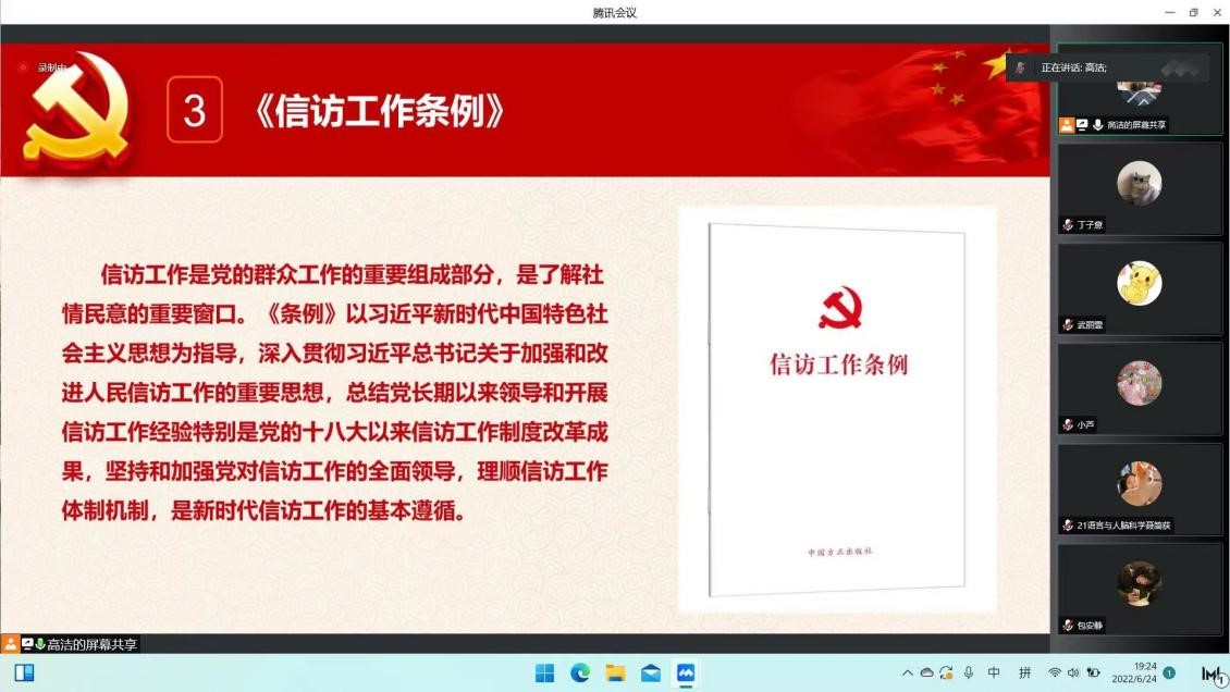 最后,党员同志们学习了《信访工作条例》的相关内容。深入学习和贯彻习近平总书记关于加强和改进人民信访工作的重要思想、明确信访工作体制机制,方便更好地为人民服务。