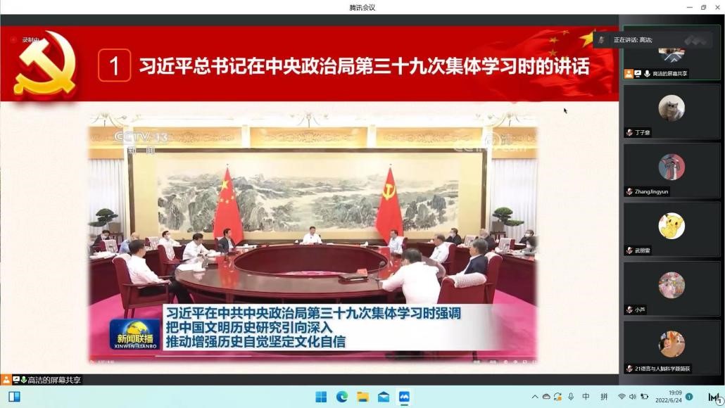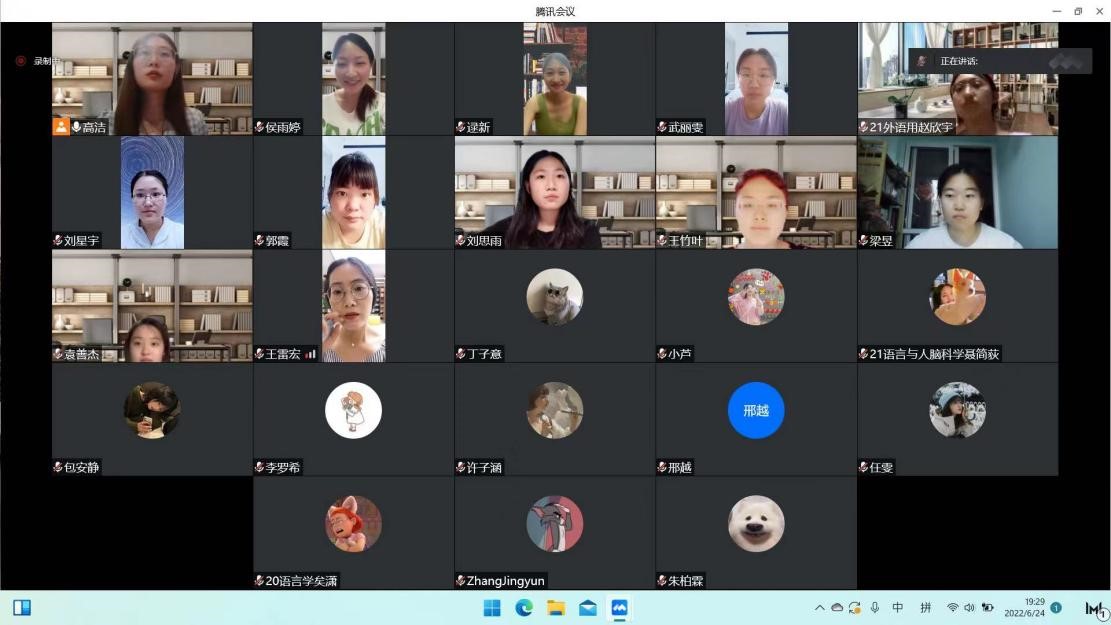 2022年6月24日19:00,语言学系学生党支部召开了以“永葆初心,勇担使命”为主题的六月党日活动,参与活动的成员有语言学系学生党支部全体党员同志以及入党积极分子等。