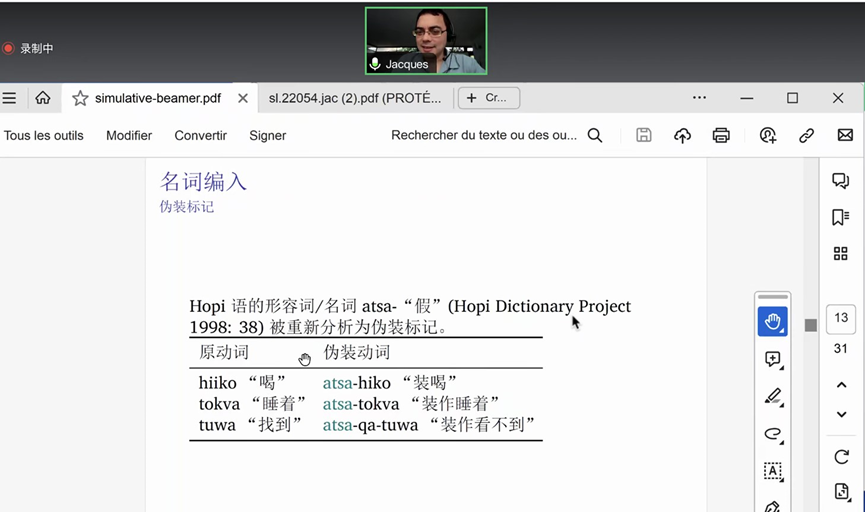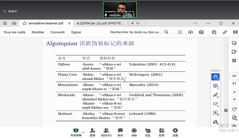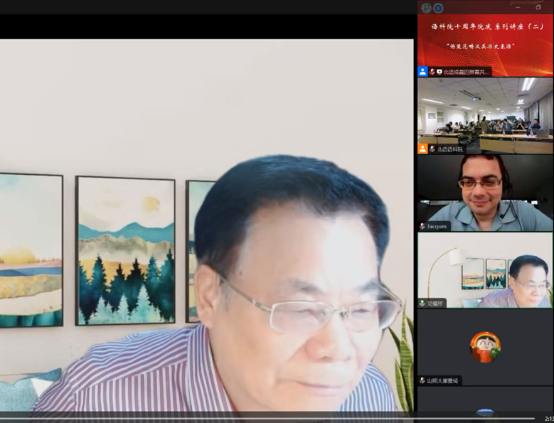 北京时间2023年9月26日18点30分,法国语言学专家,法国国家科研中心(CNRS)和东亚语言研究所(CRLAO)一级正教授,高等研究应用学院(EPHE)一级教授Guillaume Jacques(向柏霖)教授为师生们带来了题为“伪装范畴及其历史来源”的精彩讲座。