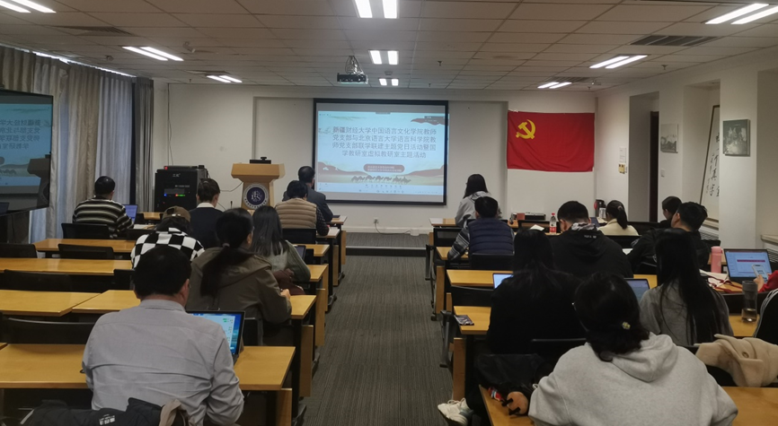 为了深学习贯彻党的二十大精神,进一步深化党建与业务的深度融合,充分发挥基层党组织结对共建的优势,促进支部互相学习,交流互鉴。2023年11月9日上午,北京语言大学语言科学院教师党支部与新疆财经大学中国语言文化学院美育中心党支部开展“团结共建 携手前行”线上主题党日活动。此次主题党日活动是语科院教师党支部与新疆财经大学中国语言文化学院美育中心党支部首次开展联学共建。语言科学院各学生党支部委员也参加了此次活动。
