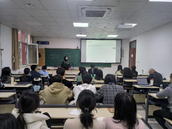 在第二个环节,辅导员孟雪老师为大家介绍了语言学系本科毕业生就业和升学的情况,并进行了深入分析。孟老师结合2023届语言学本科毕业生的去向以及自己的亲身经历,在生涯规划方面给同学们提出了许多建议,并给同学们分享了获取各种信息的渠道。