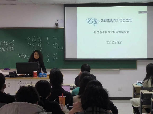 司富珍教授介绍了语言学作为一个新专业的建设情况,详细解读了培养方案中的课程设置、培养目标等内容。作为国家首批语言学专业开设单位,北京语言大学语言学系对标国际一流大学的(如MIT)语言学专业课程体系,并结合汉语语言学的特点,经过校内外专家的多轮讨论和修订,制定了语言学专业的培养方案。培养方案由“语言学+跨学科+外语”三个模块的知识系统组成,通过四年的学习,学生应掌握系统的语言学知识结构、实验方法以及研究方法,还应掌握一门第二外语。最后,司老师指出,语言学专业属于外国语言文学大类,所培养的学生既是语言学专业的人才,也是外语类、英语类的人才,同学们投入专业学习的同时也要重视外语学习。