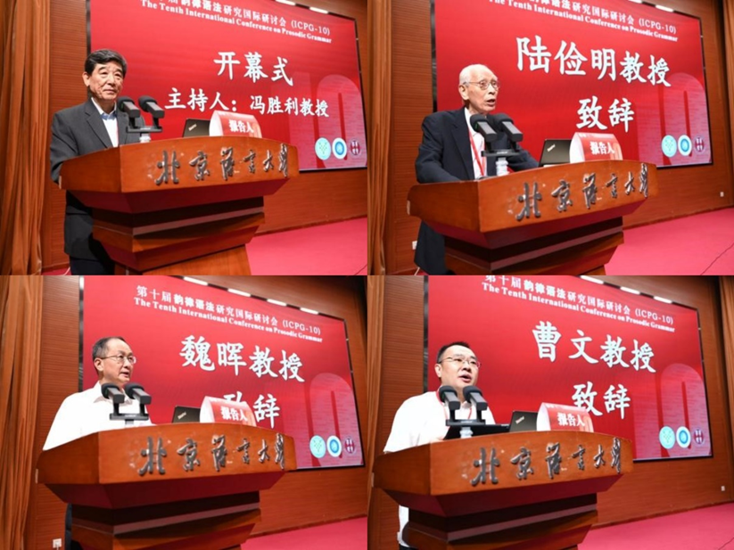 会议开幕式由北京语言大学冯胜利教授主持。北京大学陆俭明教授首先致辞,陆先生指出,汉语韵律语法学的诞生为汉语语法研究开辟了一个新的研究领域,形成了以冯胜利教授为代表的汉语韵律语法研究团队,并提出汉语韵律语法研究要重视对停顿的研究。随后,北京语言大学党委副书记魏晖教授、北京语言大学语言科学院院长曹文教授,分别代表北京语言大学和语言科学院,向关注、支持、参与本届韵律语法研究国际研讨会的各位前辈和学界同仁表示热烈欢迎。