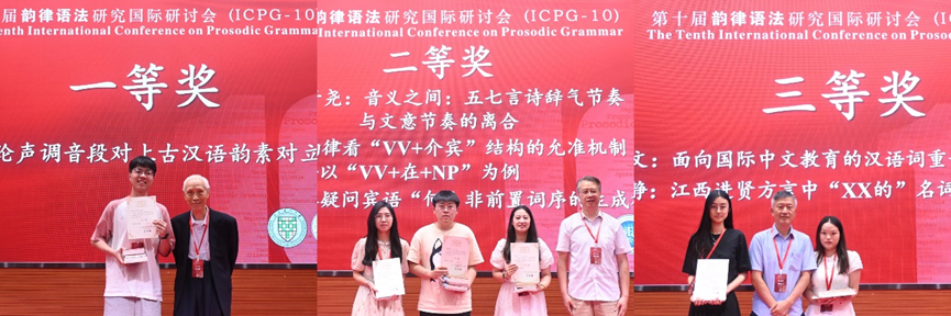 三等奖2名:朱博文《面向国际中文教育的汉语词重音习得研究》,俞雯静《江西进贤方言中“XX的”名词的韵律形态研究》。