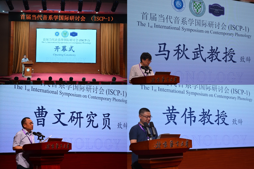 7月21日上午,由中国语文现代化学会音系学专业委员会发起并主办的“首届当代音系学国际研讨会”正式开幕,暨南大学宫齐教授、西安外国语大学赵永刚教授主持了会议的开幕式,中国语文现代化学会副秘书长黄伟教授、北京语言大学语言科学院院长曹文研究员、北京语言大学语言科学院语音研究所所长马秋武教授先后致辞,向关注、支持、参与“首届当代音系学国际研讨会”的各位前辈和学界同仁表示热烈欢迎。