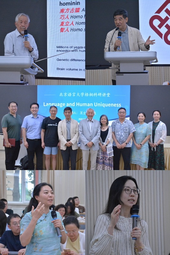 2025年7月11日下午,由北京语言大学科研处和语言科学与资源学院(语言科学研究院)联合主办的新一期梧桐科研讲堂在北京语言大学教二楼101会议室成功举行。本次讲堂特邀著名语言学家王士元先生以“LANGUAGE AND HUMAN UNIQUENESS”为题做报告,校学术委员会主任委员冯胜利教授、语言科学与资源学院党委书记赵璞老师、科研处副处长闻亭教授和校内外师生近200人参加了此次讲座。讲座由语言科学与资源学院副院长刘晓海主持。