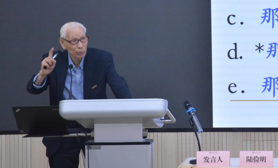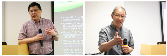 贝罗贝教授做了题为《A new look at lexicology and lexicalization in Chinese》的特邀报告。报告指出,过去五十年汉语词汇学与词汇化研究相对边缘,缺乏关联与系统视野。这一局面部分源于 “词”“词汇化” 等术语定义在学界存在分歧,例如对 “词汇化” 就有 “语法化逆过程” 和 “短语转化为词项机制” 等不同理解,而汉语屈折形态贫乏的特点更增加了整合这些观点的难度。 贝罗贝教授做特邀报告 题目:A New Look at Lexicology and Lexicalization in Chinese 陆俭明教授做了题为《语义关系所遵循的基本原则》的特邀报告。报告指出,语义关系遵循语义和谐律与关联性原则,前者体现在句式整体与成分、内部词语、外部词语及前后句式间的语义和谐,且具有普遍性,而关联性原则是其机制,源于客观世界的联系,核心为因果关系。 陆俭明教授做特邀报告 题目:语义关系所遵循的基本原则 王宁教授做了题为《论汉语词汇的双音化》的特邀报告。报告指出,汉语词汇历经原生、滋生、合成三阶段,双音合成始于魏晋且至今高产,这是因区别律下单音节区别功能饱和,而双音节区别能量更大,也是古代汉语向现代汉语转折的标志,与当时文化特点相关。双音化使词汇表达更细密、系统更严密,其结构分析需融入意义因素。 王宁教授做特邀报告 题目:论汉语词汇的双音化 蒋绍愚教授做了题为《〈朱子语类〉与宋代语言》的特邀报告。报告聚焦《朱子语类》这部宋代重要文献如何反映宋代语言,从其语言本身、版本情况、词语相关问题及语法特点四个方面展开讨论。通过对这几方面的剖析,深入探究了该文献所呈现的宋代语言面貌。 蒋绍愚教授做特邀报告 题目:《朱子语类》与宋代语言 曾志朗教授做了题为《A Predictive Brain for Language Development》的特邀报告。受王士元教授观点启发,曾志朗教授从个体发生学的角度,通过 fNIRS 等技术研究发现6 个月婴儿的预测性神经信号与 12、18 个月的表达性词汇能力正相关,早期共读经验可通过增强该信号促进词汇发展,还探讨了父母与 12 个月婴儿共读时的对话式阅读策略。报告回顾了实验室在婴儿脑发育及经验依赖 / 独立学习方面的认知神经科学研究,指出这一领域仍需深入探索。 曾志朗教授做特邀报告 题目:A Predictive Brain for Language Development 除了特邀报告外,本次会议还邀请了专家做专题报告。 黄居仁教授的报告题目是《感官,认知,与语言:感官词汇与语料库驱动》,指出感官是认知基础,而汉语语言学近年才深入关注感官与语言的互动,其聚焦联觉、感官强度与运动常模、具身度三个议题,强调感官词汇的重要性及汉语词汇语义学研究的科际整合特性与解释力。 李亚非教授的报告题目是《咱也说说动词复制》,他谈到现有形式语法框架下用成分移位分析 “唱歌唱得很好听” 这类动词复制句式存在不足,其从连动式角度结合普遍语法 - 象似性界面理论,提出象似性可弥补普遍语法内在缺陷,以统一分析该句式的语法特征。 黄居仁教授、李亚非教授做专题报告 吴福祥教授的报告题目是《如何识别接触引发的语言演变》,他指出接触引发的语言演变近年受历史语言学界关注,学者们对此提出诸多理论并探讨识别方法,他结合了中国境内语言事实,在前人基础上讨论相关判定方法。 马秋武教授的报告题目是《The Paradox of Tianjin Tone Sandhi: A Stratified HS Account》,他指出天津方言存在双音节和三音节声调变调现象,其中三音节双向变调的音系不透明性被称为“天津声调变调悖论”,通过提出分层和谐序列化理论,依据中间声调类型划分结构并调整制约条件排序,成功解决了这一悖论。 洪波教授的报告题目是《征派与浮现:话语标记产生的两种途径》,他提到汉语语气副词属于话语标记,可分为重读和弱读两类,功能各异且来源不同,并以 “确实”“简直”“都”“特么” 等为例,探讨其产生的两种途径。 吴福祥教授、马秋武教授、洪波教授做专题报告 12日下午的《中国语言学报》发展座谈会上,JCL北京编辑部赵晴编辑详细介绍了刊物的发展情况,并特别提到《中国语言学报》自2025年起参与Project MUSE主导的S2O项目,自第53卷第1期开始,刊发文章转为开放获取。随后,李亚非教授介绍了《中国语言学报》的特别栏目“Insight(洞见)”,该栏目致力于推动汉语语言学的新材料、新观点、新思想快速面世,并欢迎广大学者积极投稿。全体与会嘉宾畅所欲言,针对目前《中国语言学报》面临的问题与挑战提出了意见与建议。 与会学者听会 自2024年起,《中国语言学报》编辑部为做出突出贡献的审稿专家授予荣誉证书,以感谢审稿人一直以来在稿件评审中付出的努力。在本届会议的优秀审稿人证书颁发仪式上,主编冯胜利教授、徐杰教授表达了对81位优秀审稿专家的感谢,并为在场的13位优秀审稿专家一一颁发了荣誉证书。 《中国语言学报》主编与在场优秀审稿专家合影留念 13日上午的《中国语言学报》编委内部讨论会上,徐杰教授和冯胜利教授向各位编委汇报了过去一年《中国语言学报》的发展情况。2024年,《中国语言学报》顺利完成了第53卷1、2、3期以及JCL第30部丛书的出版工作。北京编辑部、澳门编辑部分别通过北京语言大学章黄学术理论研究所公众号“章黄学理”和澳门大学语言学研究中心公众号“镜海语言学”进行新刊推广,从52卷第3期开始增加