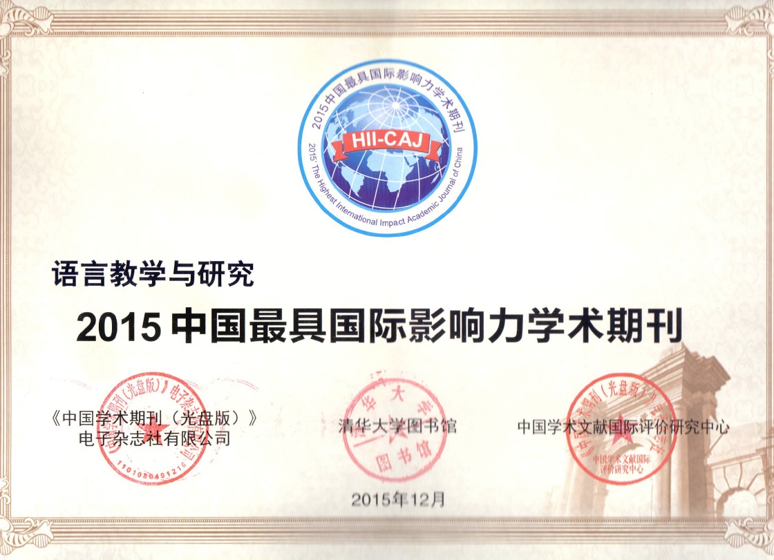 2015年12月18日,《中国学术期刊(光盘版)》电子杂志社有限公司、清华大学图书馆和中国学术文献国际评价研究中心在京联合发布“2015中国学术期刊国际引证年报”,《语言教学与研究》入选“2015中国最具国际影响力学术期刊”(人文社会科学)。
