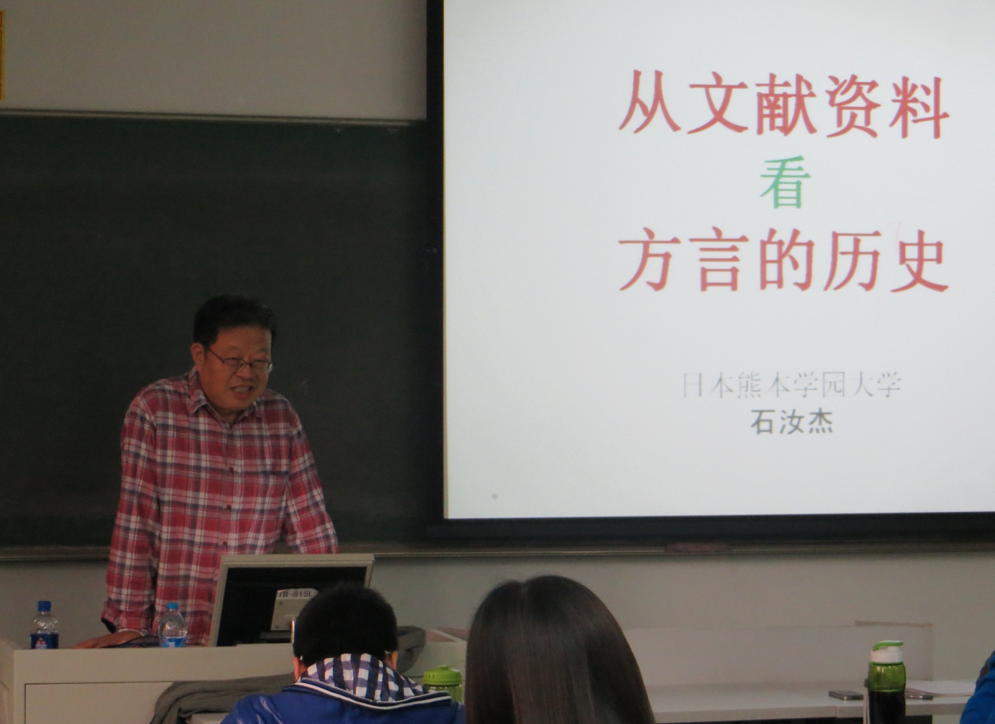 2014年10月10日上午,我院“走近语言科学前沿”系列讲座(十)在教一楼312成功举办。日本熊本学园大学石汝杰教授做了题为“从文献资料看方言的历史——以吴方言的文献为例”的学术讲座。本次讲座由我院党总支书记赵日新教授主持。