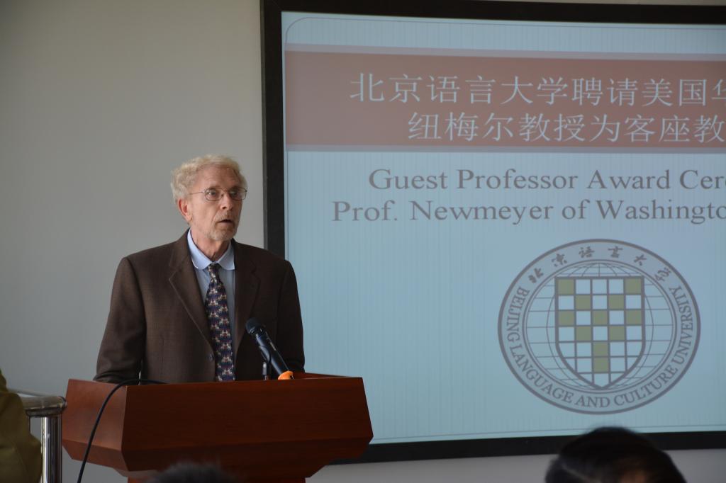 2014年10月15日,北京语言大学聘请美国华盛顿大学Frederick J Newmeyer(纽梅尔)教授客座教授仪式在新综合楼707教室举行。崔希亮校长出席活动并致辞。