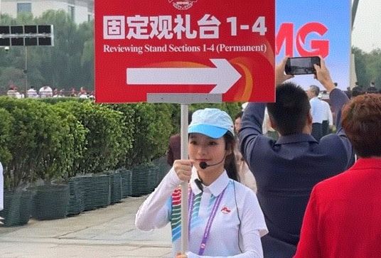 在抗战胜利八十周年的庄严时刻,我作为一名观礼台区域的引导志愿者,肩负着为与会嘉宾指引观礼席位、服务设施方位的职责。