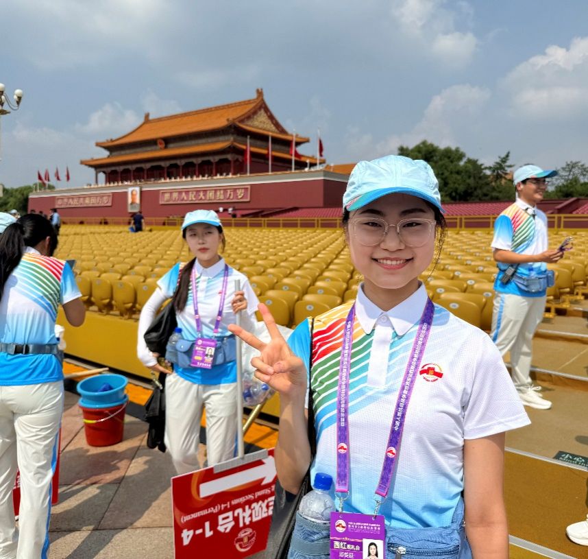 为了这一刻,我们参与了两个月系统而专业的岗前培训。这段经历让我深刻认识到,志愿服务远超简单的体力付出——它是一次难得的学习历程、一场精神的锻造,更是一份沉甸甸的时代责任。所有付出,都是为了以最专业的态度、最饱满的敬意完成使命,用当代青年的实际行动向历史致敬,展现新时代的风采。